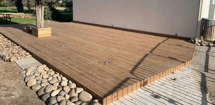 Les élèves de terminale Aménagements Paysagers ont réalisé une magnifique terrasse en bois au sein du Campus Fontlongue de MIRAMAS, afin que nos élèves et étudiants profitent de cet espace extérieur pour le repas de midi. Cet embellissement du Campus a été fait dans le cadre des “chantiers écoles qui permettent à nos élèves de se mettre dans les conditions réelles d’une réalisation professionnelle. Ce chantier a été accompagné par M. Thuillier, ancien élève du Campus et médaillé d’or au concours du meilleur apprenti de France de l’entreprise “Arthéos Paysage” ainsi que la société “vivre en bois”.